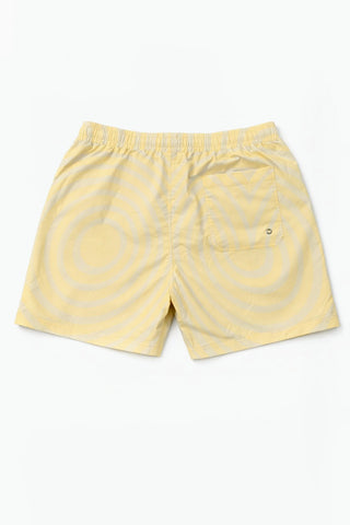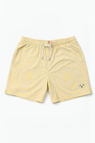 Dive into pure sunshine with Shore Borne's Butter Bay swim shorts, featuring a hypnotic spiral pattern in creamy butter yellow. These swimming trunks showcase swirling ribbons of golden color that radiate warmth and playful energy. Designed with soft mesh lining and secure pockets, these men's swim shorts keep your essentials safe while you soak up the sun. From beach barbecues to poolside lounging, the Butter Bay swimsuit for men delivers eye-catching style with all-day comfort that's as sweet as summer itself.